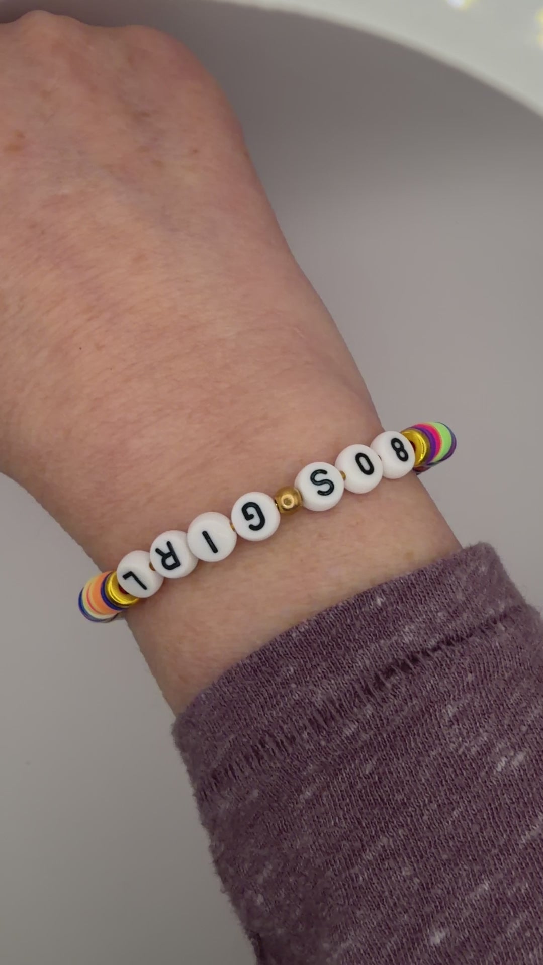 Made with polymer clay beads, stainless steel beads, and stainless steel memory wire.
