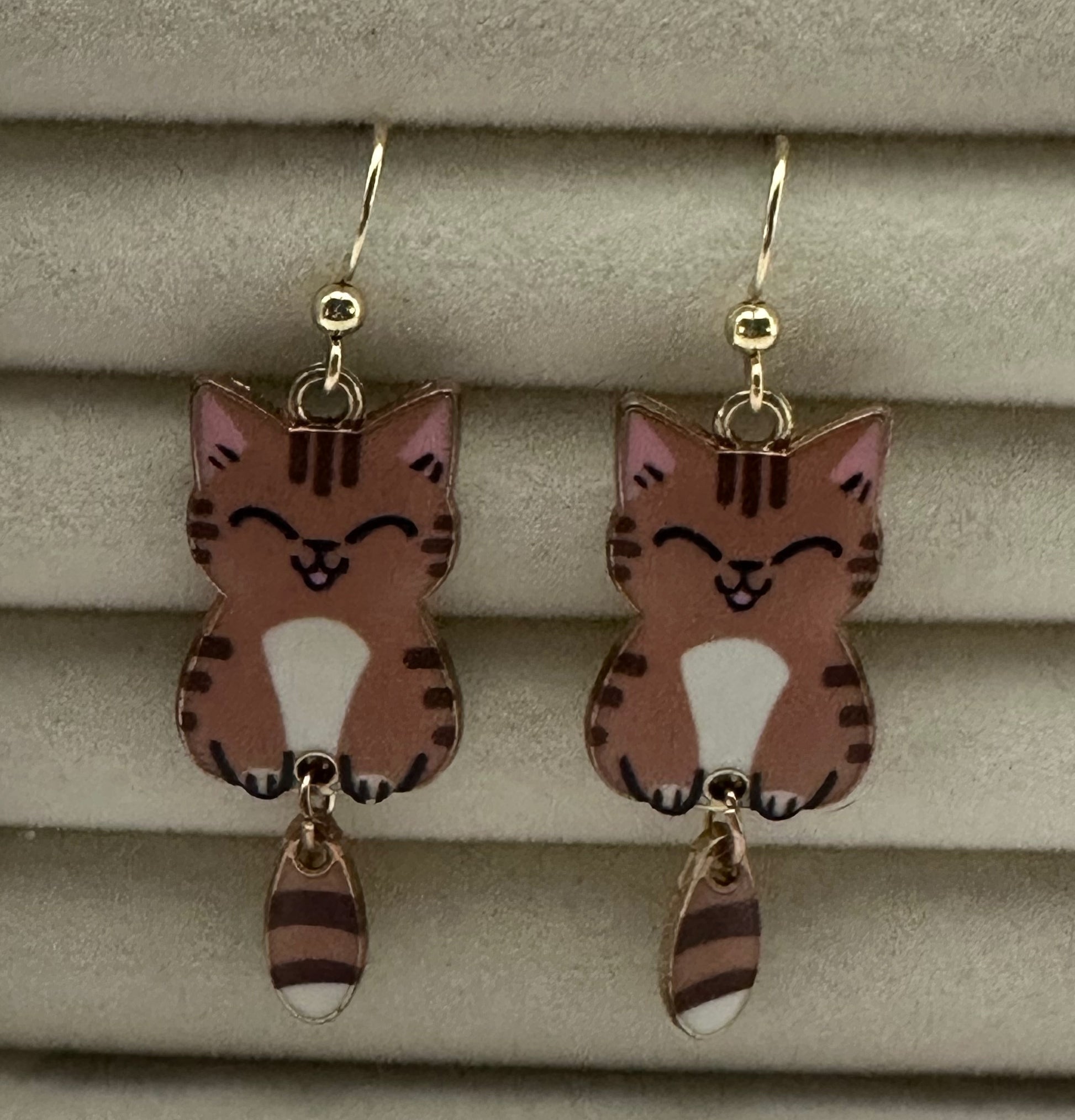 Adorable kitty cats with dangling tails. Painted matte finish. Made with 14k gold-filled hooks.