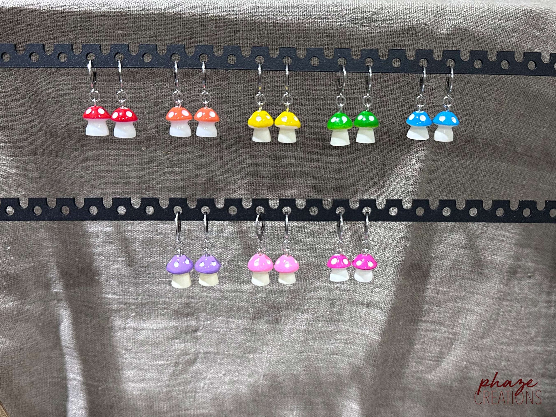Colorful Mushroom Dangle Earrings with Mini Macaron Storage