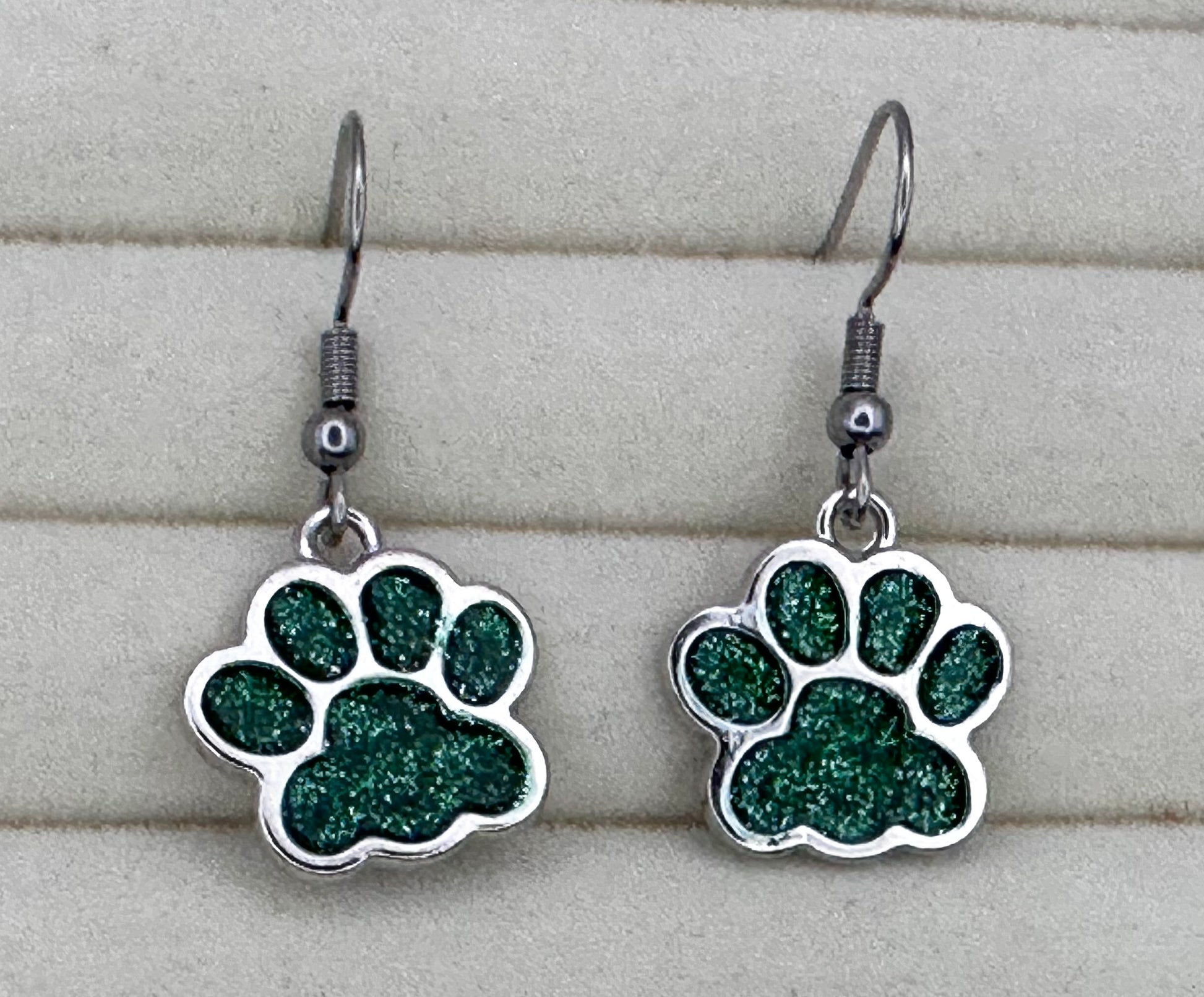 Green Paw Print Earrings