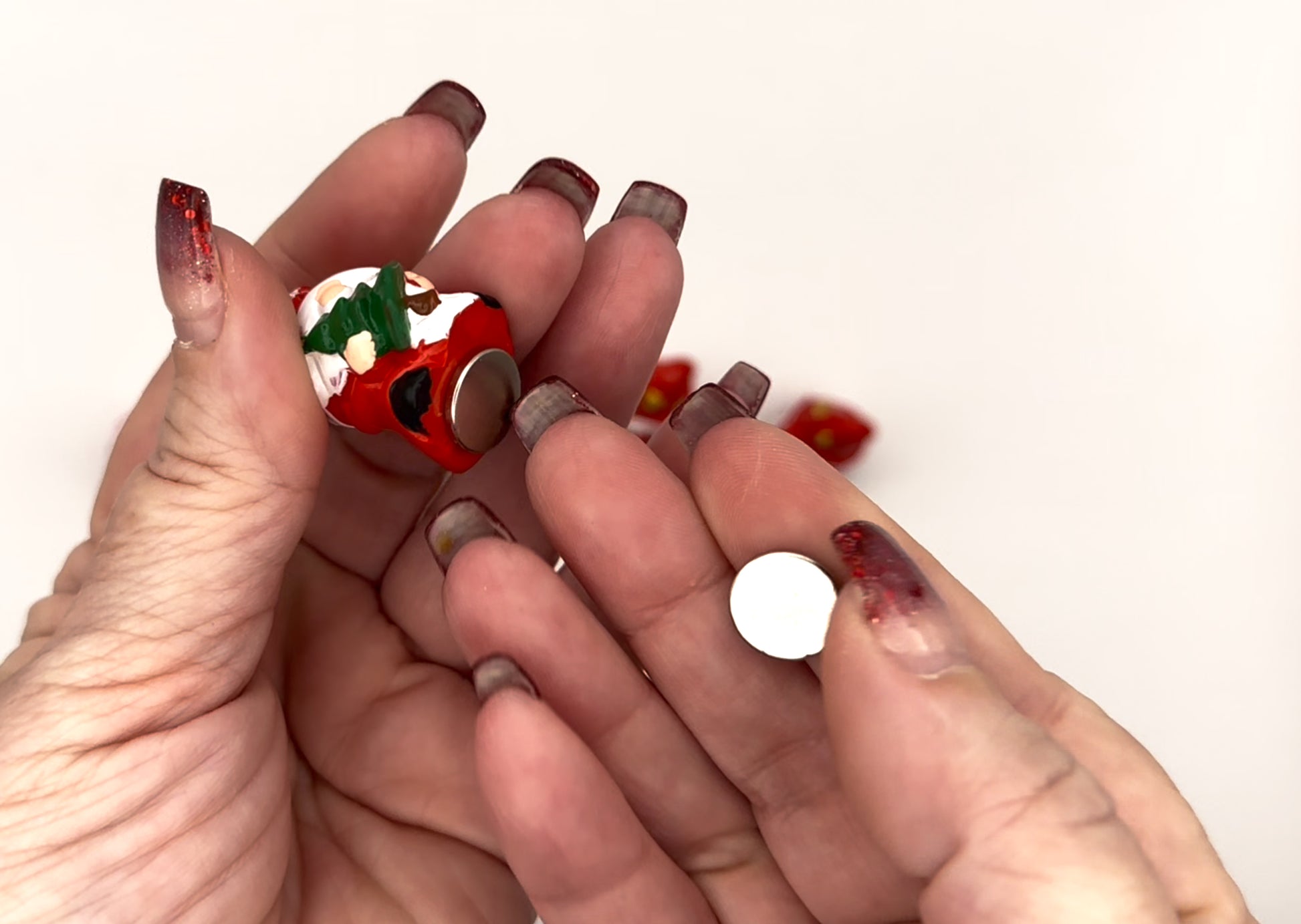 These adorable 3D Christmas cover minders sport strong rare earth magnets to keep covers and pages in place. Each gnome holds something special — holiday bells, gift, tree or candy cane. The tree is sparingly embellished with red balls.
