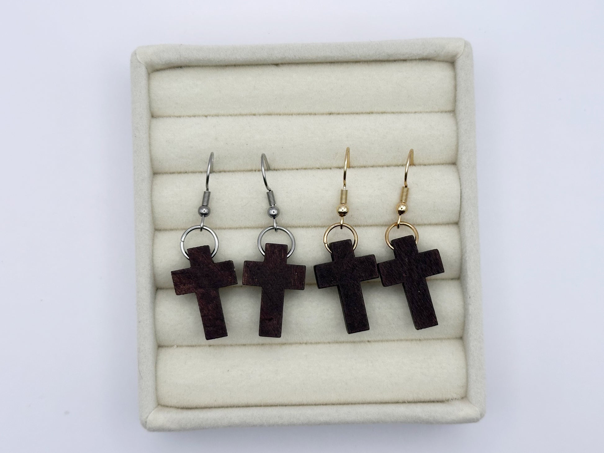 Made of wood. Choose stainless steel or 14k gold-filled findings.