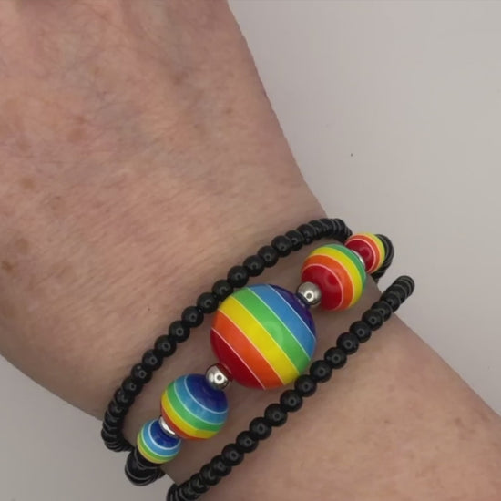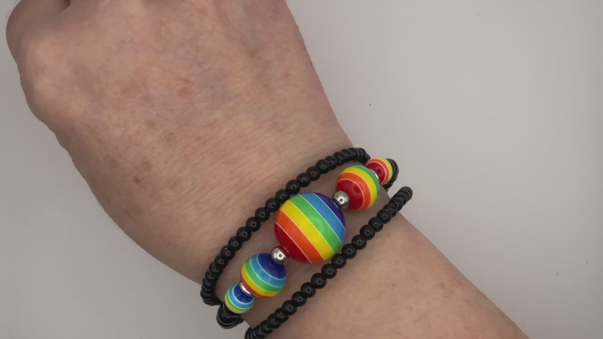 Made with acrylic and stainless steel beads, this wrap-on bracelet makes bold rainbows pop. Also available with 14k gold-filled accents.
